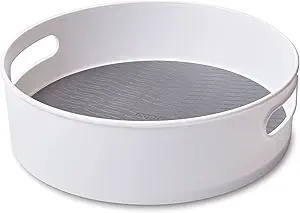 This lazy Susan makes accessing cabinets or countertops effortless. The non-slip base keeps it steady while rotating smoothly to reach spices, sauces, or condiments. Its low-profile design works in pantries, refrigerators, or tabletops, and the durable plastic surface wipes clean quickly. You won’t have to knock things over reaching for things in the back now.