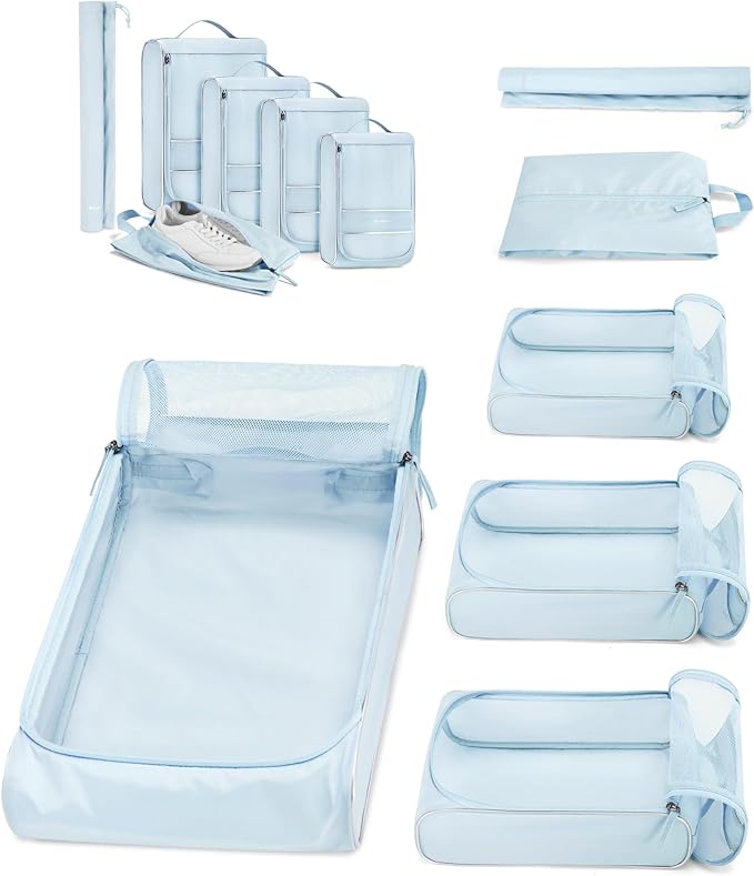 These packing cubes help keep luggage organized and maximize space. Compression options reduce bulk, making it easier to fit more items. Each cube is lightweight yet durable, with zippers that slide smoothly. They’re ideal for separating clothing types, keeping dirty and clean items apart, or streamlining airport security. Using them makes packing and unpacking faster. It’s no question why packing cubes are becoming a staple for travelers!