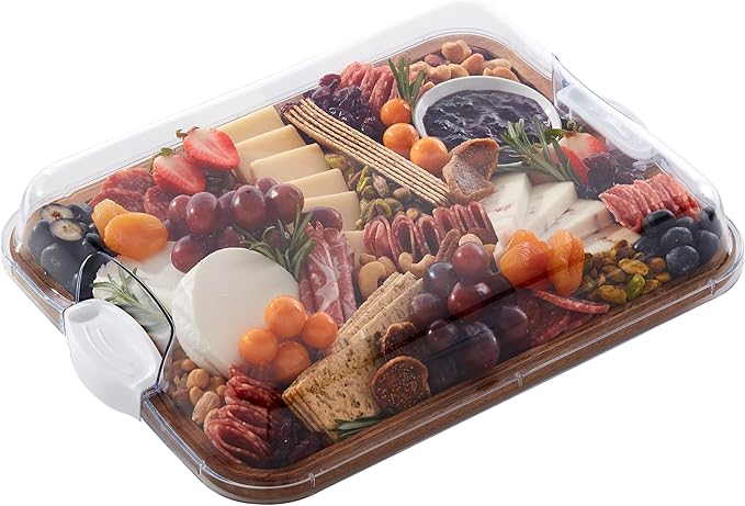 This cutting board keeps snacks, cheeses, or ingredients organized with built-in compartments. The clear lid locks items in place, while the natural acacia surface is sturdy and knife-friendly. The handles are especially useful when serving a charcuterie spread or prepping meals. Its compact design is practical for small kitchens and easy to clean after use.