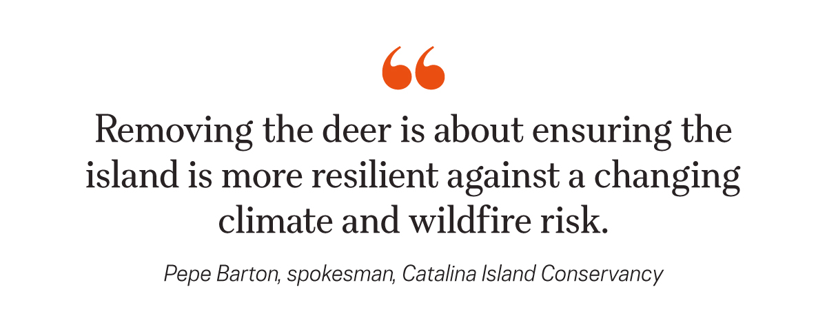 “I don’t believe that there’s a deer problem,” she said, citing Tony Budrovich, a former head of the conservancy who said at an Avalon City Council meeting in 2018 that the island can “very easily” sustain 500 mule deer.