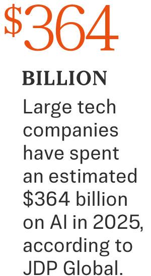 Overall, large tech companies have spent an estimated $364 billion on AI this year, according to JDP Global.