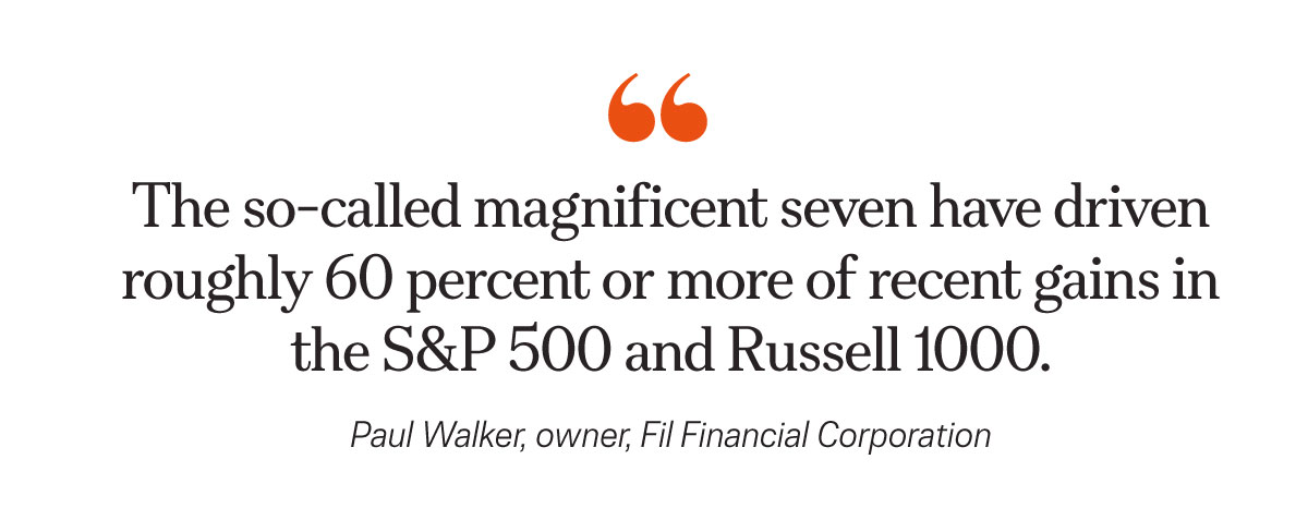 “What most investors don’t realize is just how concentrated the market has become,” he said. “The so-called magnificent seven have driven roughly 60 percent or more of recent gains in the S&P 500 and Russell 1000.