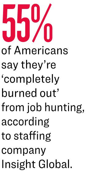 Consequently, it’s not surprising that 55 percent of Americans say they’re “completely burned out” from job hunting, according to staffing company Insight Global.