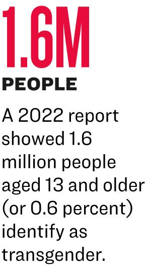 A 2022 report from the Williams Institute at the University of Southern California showed 1.6 million people aged 13 and older (or 0.6 percent) identify as transgender in the United States.