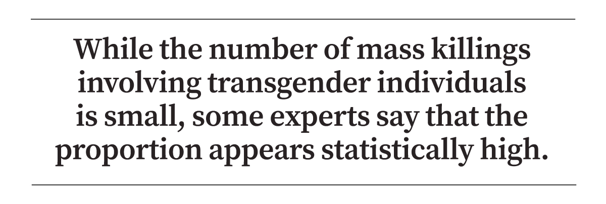 While the number of mass killings involving transgender individuals is small, some experts say that the proportion appears statistically high.