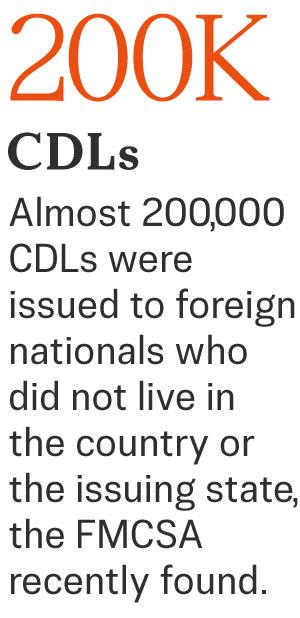 FMCSA audit results published in September revealed that thousands of CDLs had been issued improperly. Of the approximately 4 million CDLs in the United States, the FMCSA found that almost 200,000 were issued to foreign nationals who did not live in the country or the issuing state.