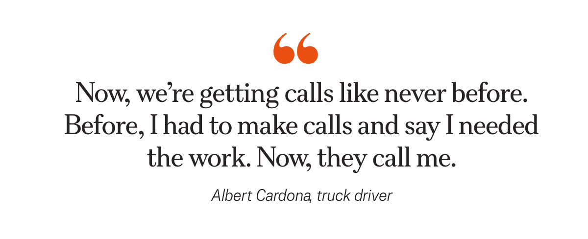 “Now, we’re getting calls like never before,“ Cardona said. ”Before, I had to make calls and say I needed the work. Now, they call me.”