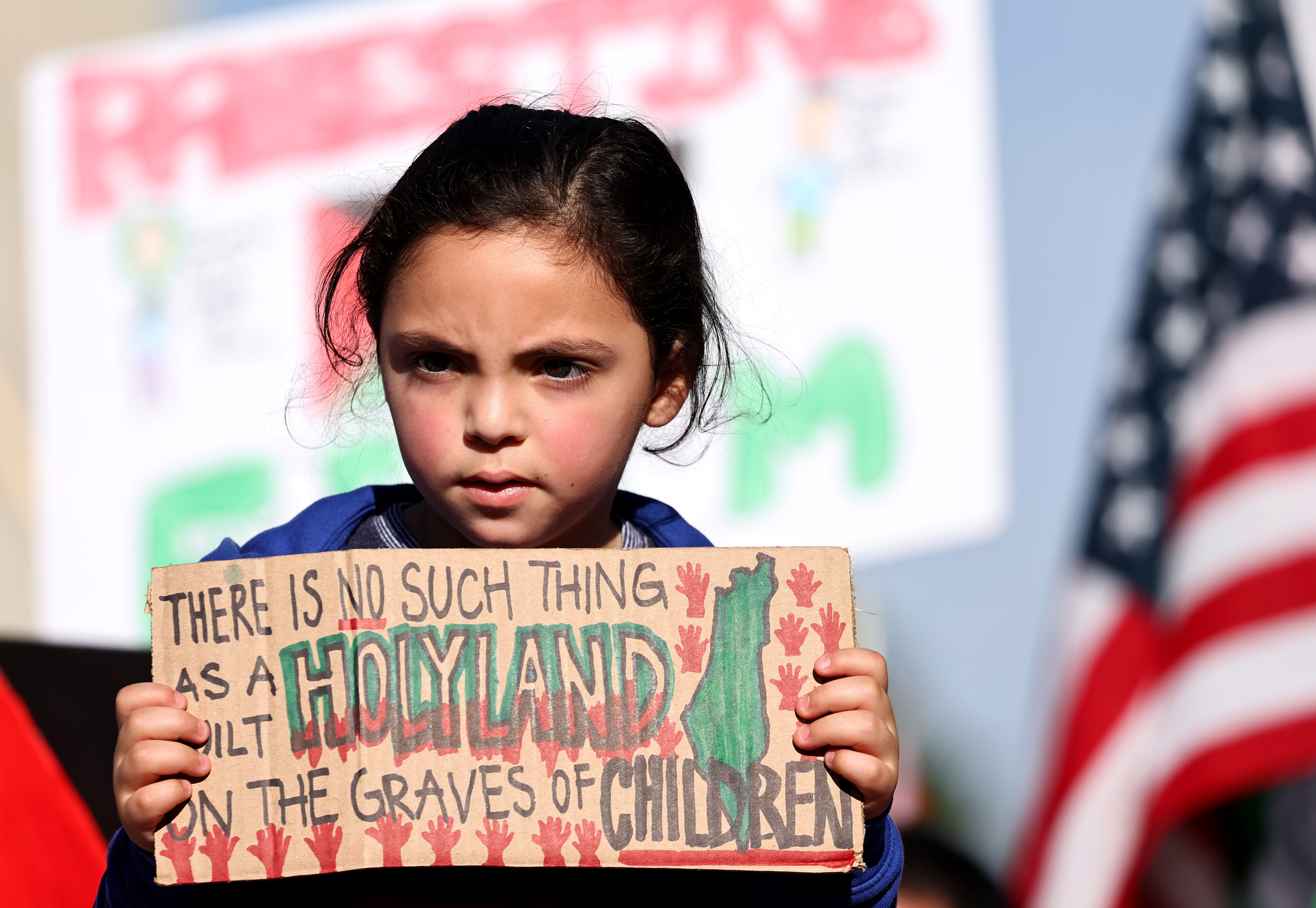 Protesters wave Palestinian flags in support of the state of Palestine in Los Angeles, Calif., on Oct. 12, 2023. (John Fredricks/The Epoch Times)