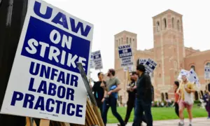 A man holds up a sign against critical race theory at a school board meeting in Temecula, Calif., on Dec. 13, 2022. (The Epoch Times)