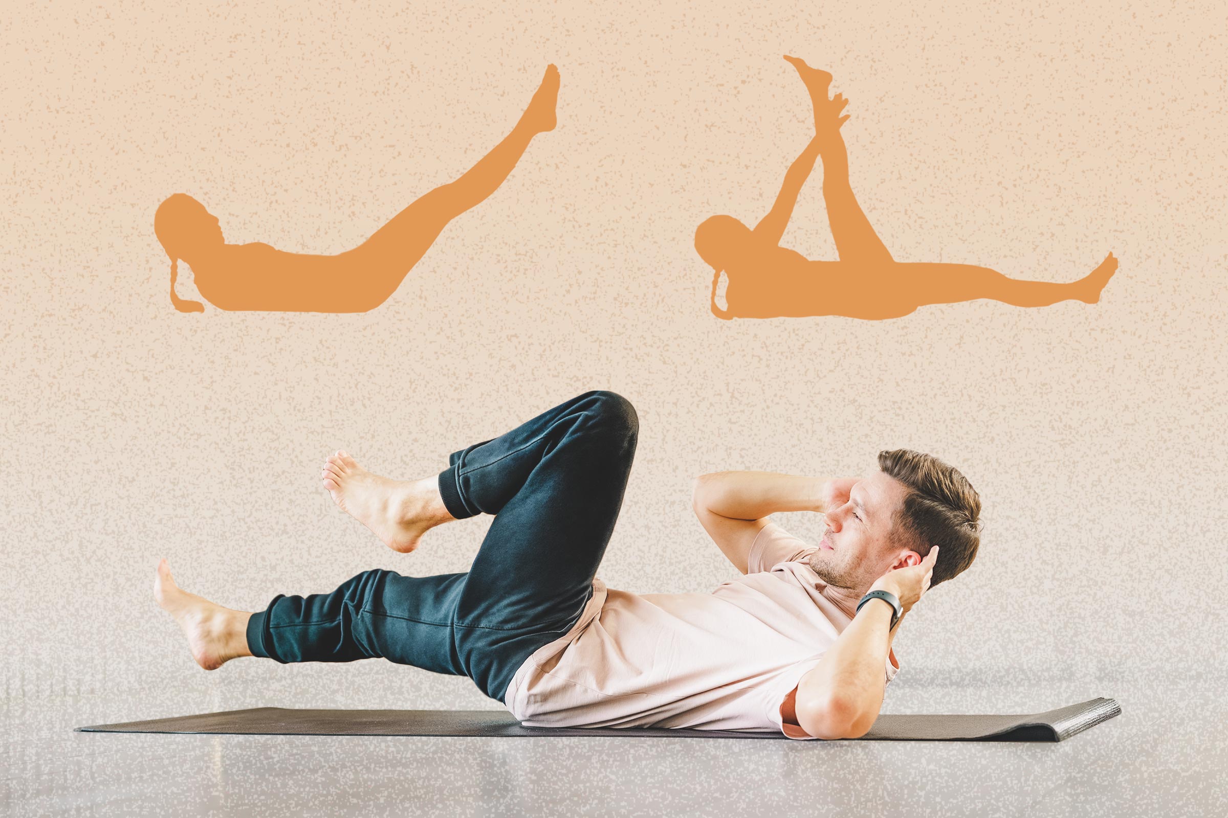Step 2: Exhale, tighten your core, and use your abs to lift your upper body and twist to the left, bringing your right shoulder towards your left knee. Inhale as you slowly return to the starting position. Then twist to the right side, alternating sides. Keep your lower back pressed to the floor throughout, avoiding excessive arching.