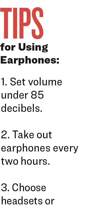 On the other hand, Dr. Saba recommends that people routinely remove their earphones at around two-hour intervals, even when used at low volumes. People with hearing loss and tinnitus can still use earphones if they limit their “doses.”
