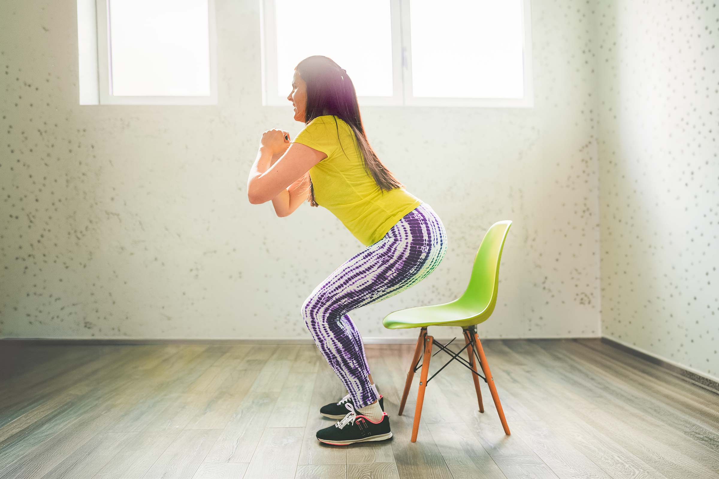 Step 3: Standing up and then sitting back down counts as one repetition. Try to perform three sets of 15 repetitions.
