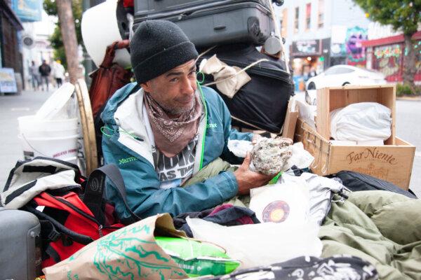 Eric Smith, who lives in the Haight-Ashbury District and has been homeless since the COVID-19 pandemic began, told The Epoch Times that he has been robbed multiple times but often finds his possessions lying on the street, including items that used to belong to his mother or grandmother.