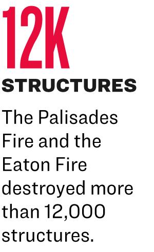 In the Palisades fire, the California Department of Forestry and Fire Protection (CAL FIRE) reported that 6,662 structures were lost, 890 were damaged, and 12 people died.