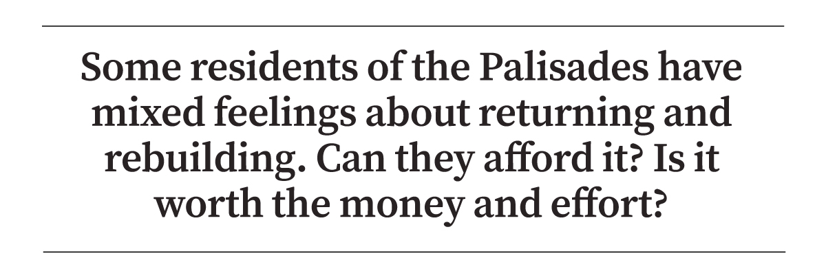 Some residents of the Palisades have mixed feelings about returning and rebuilding. Can they afford it? Is it worth the money and effort?