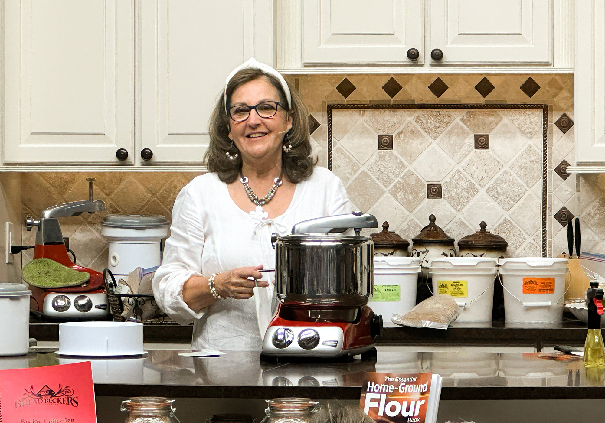 Something is always baking in Sue Becker’s kitchen. The aroma of spices, sugar, yeast, and flour hangs in the air. Bread pans, cookie sheets, and muffin tins emerge from their cabinets, ready to begin their day’s work. But there is something different about this kitchen. No matter how hard you look, you won’t find a single bag of store-bought, all-purpose flour. That’s because this author, podcaster, and cooking instructor has milled her own flour, fresh from whole grains, every day for the last 30 years.