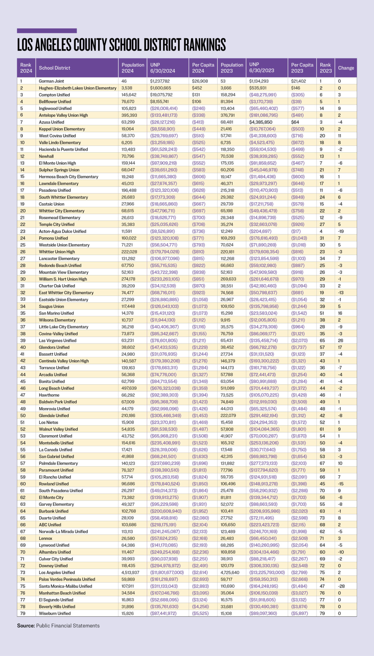 10 Los Angeles County School Districts Make Big Changes in Fiscal Rankings in 2024