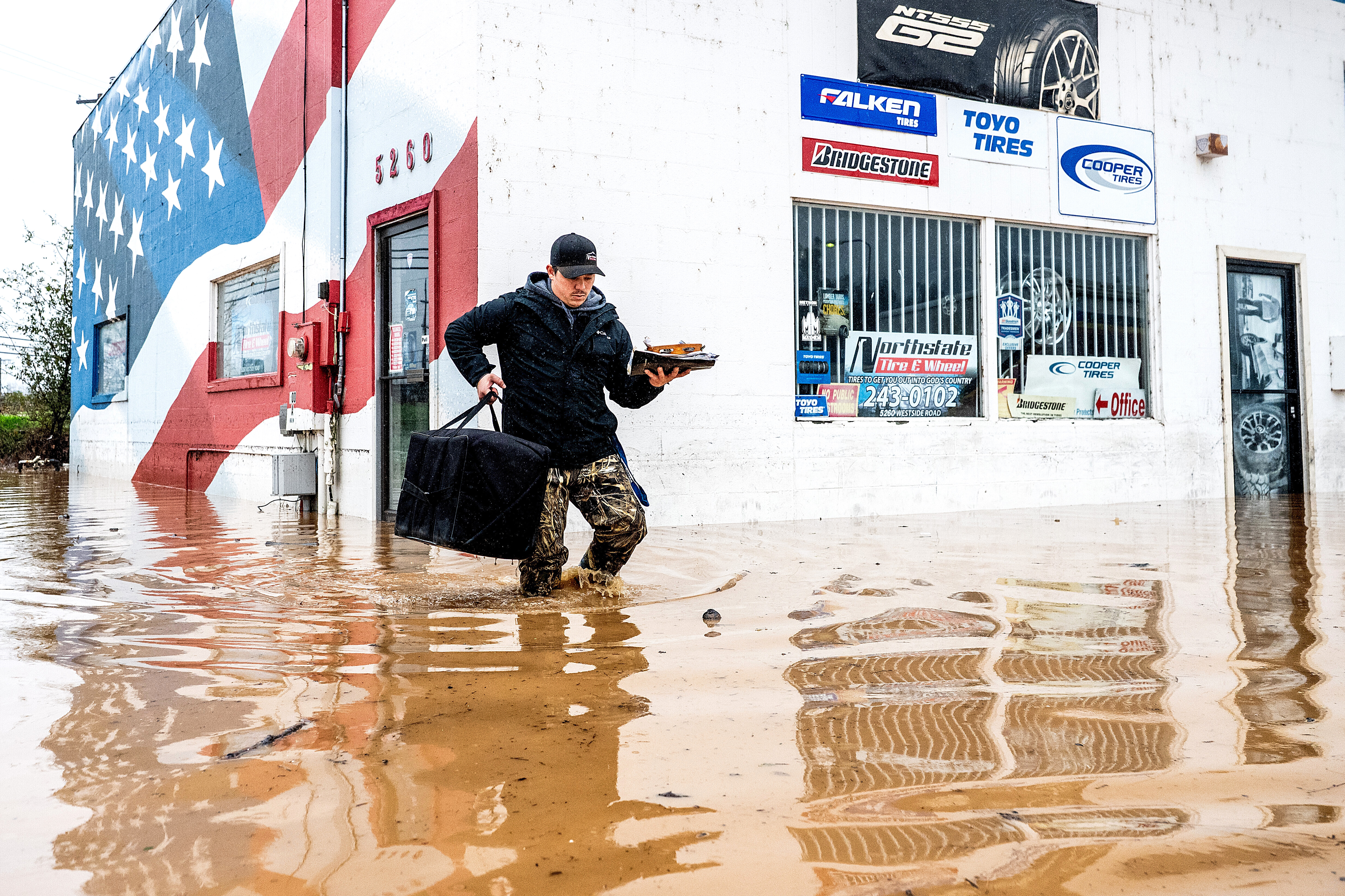 Dekoda Cruz waded in knee-deep muddy water to check on a friend’s flooded tire business, where the office was littered with a jumble of furniture and bobbing tires.