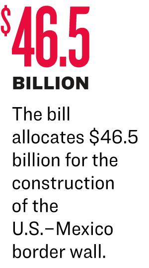 The single biggest immigration item in the law is $46.5 billion dedicated to the construction of a border wall along the U.S.–Mexico border.