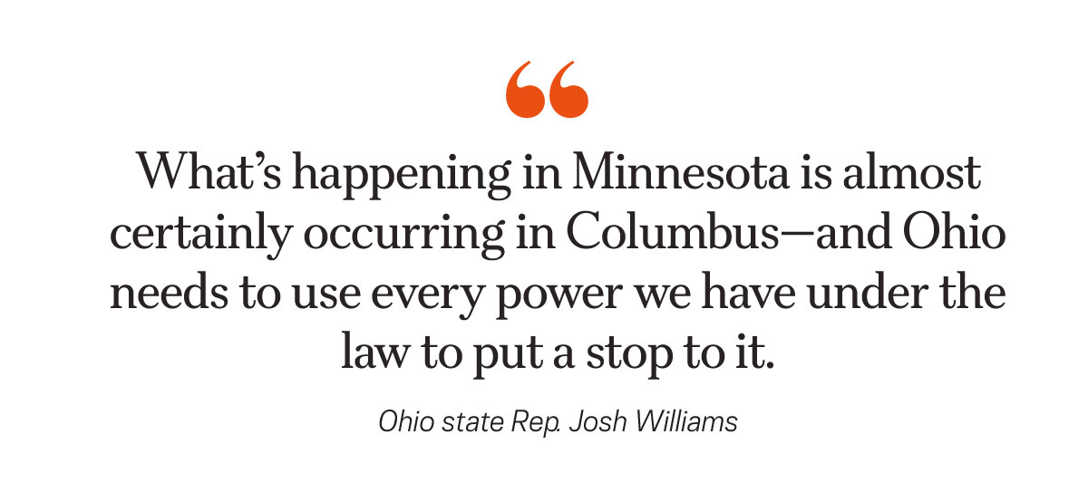 In a letter to the Ohio Department of Children and Youth, state Rep. Josh Williams said that reports from citizens caused him to suspect that “what’s happening in Minnesota is almost certainly occurring in Columbus.”