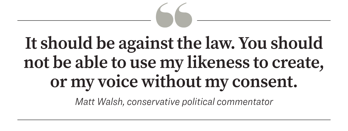 “It should be against the law. You should not be able to use my likeness to create or my voice without my consent,” Walsh said.