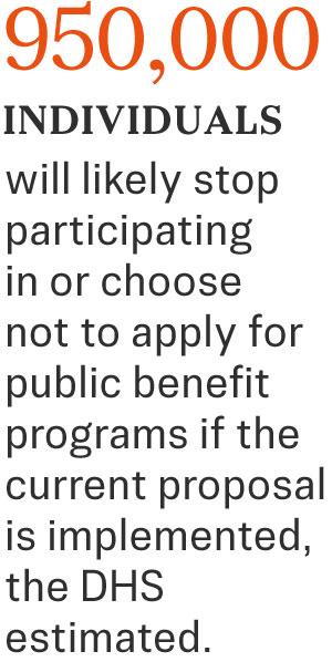 DHS estimated that about 950,000 individuals, or 10 percent, will likely stop participating in or choose not to apply for public benefit programs if the current proposal is implemented.