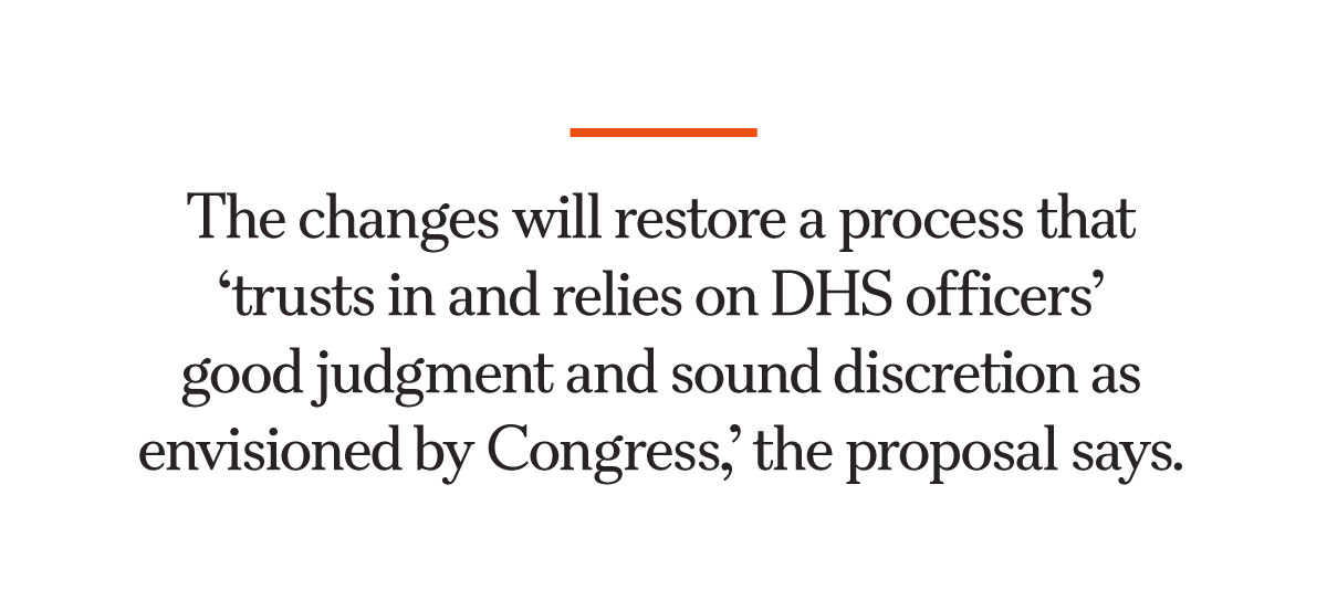 The changes will restore a process that “trusts in and relies on DHS officers’ good judgment and sound discretion as envisioned by Congress,” the proposal says.
