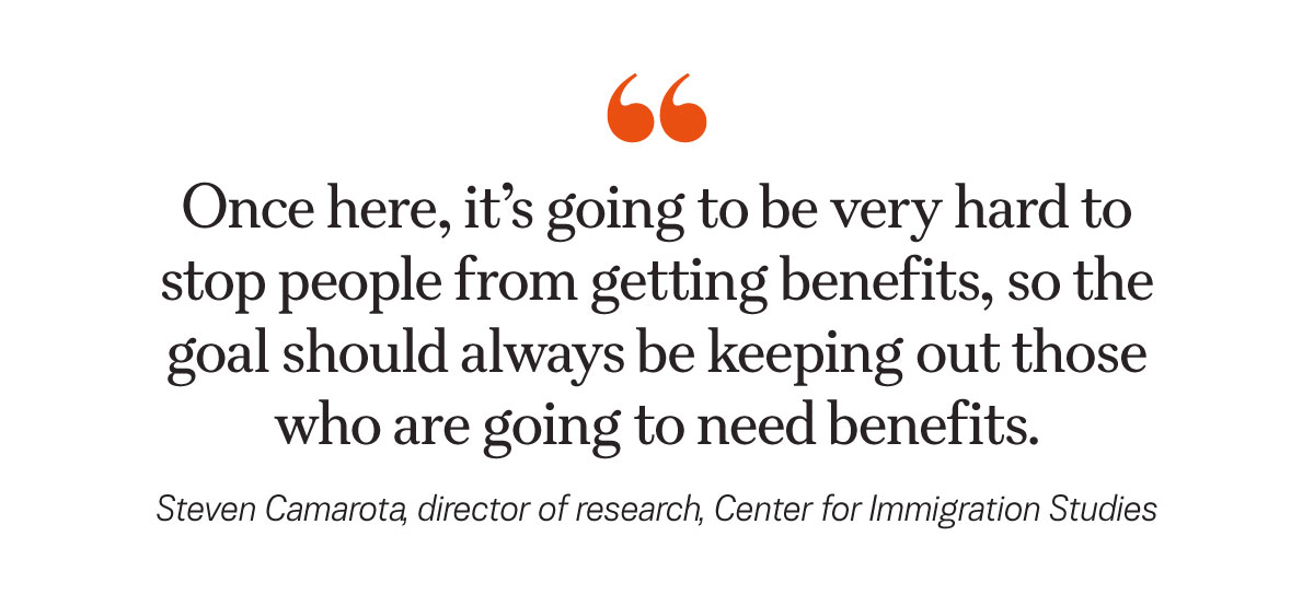 “We should be careful about who we let in,” Camarota said. “Once here, it’s going to be very hard to stop people from getting benefits, so the goal should always be keeping out those who are going to need benefits.”