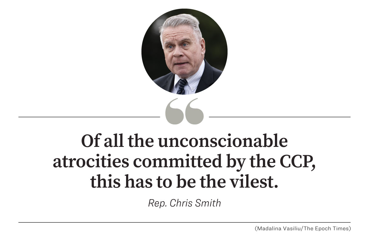 Rep. Chris Smith (R-N.J.), the primary sponsor of the Stop Forced Organ Harvesting Act (HR 1503), said Chinese communist leader Xi Jinping and his regime must “bear culpability for one of the most horrifying human rights atrocities of our time—trafficking in persons for the purpose of organ harvesting and butchering and murdering them in the process.”