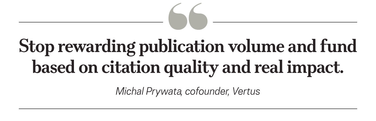 “Stop rewarding publication volume and fund based on citation quality and real impact,” he said.