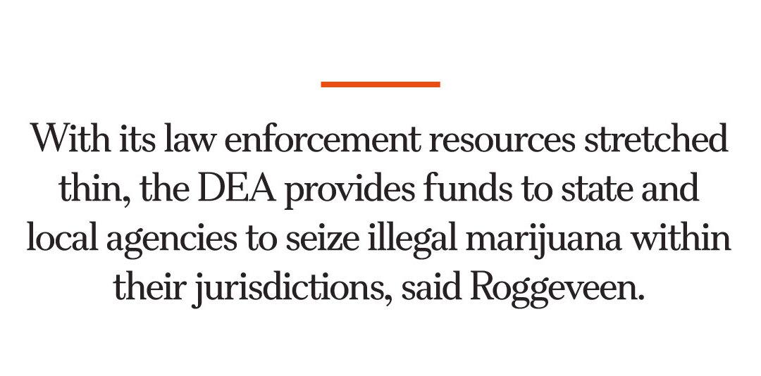 With its law enforcement resources stretched thin, the DEA provides funds to state and local agencies to seize illegal marijuana within their jurisdictions, according to Roggeveen, who led narcotics investigations, including into illicit marijuana, for the Riverside County Sheriff’s Department in Southern California.