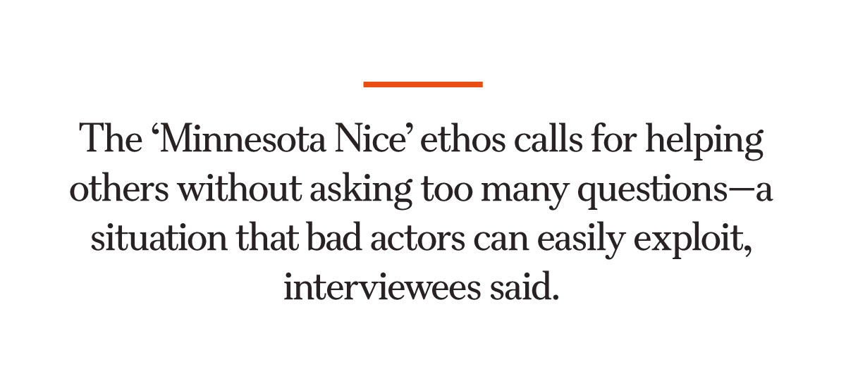 That “Minnesota Nice” ethos calls for helping others without asking too many questions—a situation that bad actors can easily exploit, interviewees told The Epoch Times.