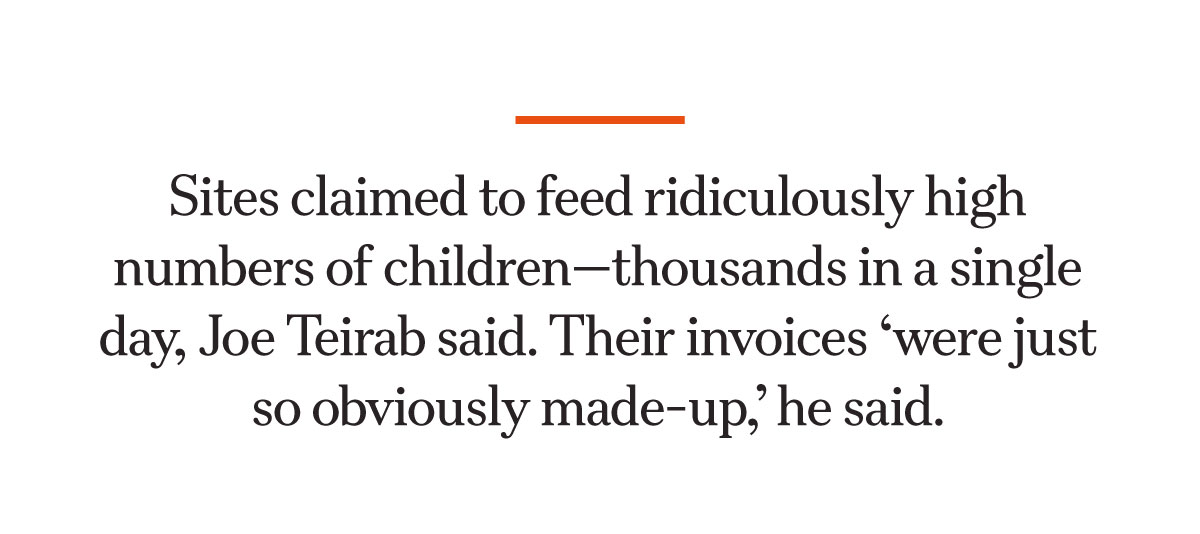 Sites claimed to feed ridiculously high numbers of children, he said—thousands in a single day. Their invoices “were just so obviously made-up,” he said.