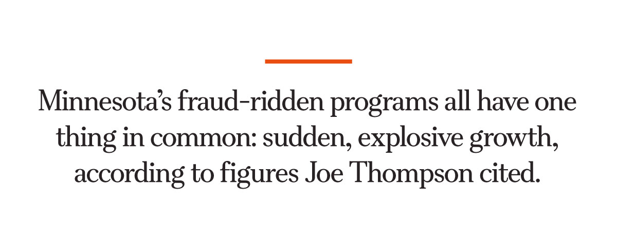 Minnesota’s fraud-ridden programs all have one thing in common: sudden, explosive growth, according to figures Thompson cited.