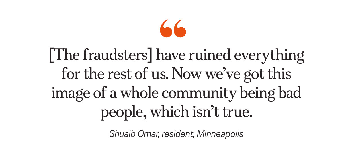 The fraudsters “have ruined everything for the rest of us,” Omar said. “Now we’ve got this image of a whole community being bad people, which isn’t true.” He also asserts that he loves America, his home since he was 8.