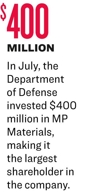 Since July, it’s more than a subsidy. The Department of Defense has set a floor price for minerals and materials pivotal in manufacturing magnets with a $400 million investment in MP Materials, which has opened a second processing plant in Texas.
