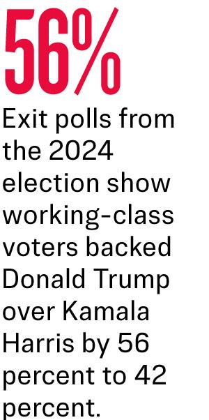 Among white working-class voters, Trump led Harris by a margin of 66 to 32 percent. He also increased his share of working-class black and Latino voters compared with 2020.