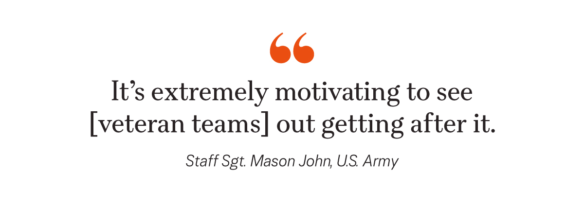 Army Staff Sgt. Mason John, who graduated from a sniper course only a month before the competition began, said he was humbled to be in the presence of many veteran teams.