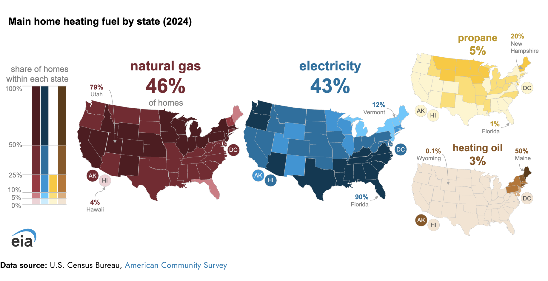 More than 46 percent of homes in the United States burn natural gas in furnaces, making it the nation’s most common space-heating fuel, according to the administration.