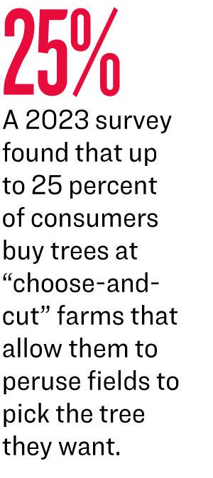 As the 2023 Real Christmas Tree Board survey revealed, up to 25 percent of consumers buy trees at “choose-and-cut” farms that allow them to peruse fields to pick the tree they want.