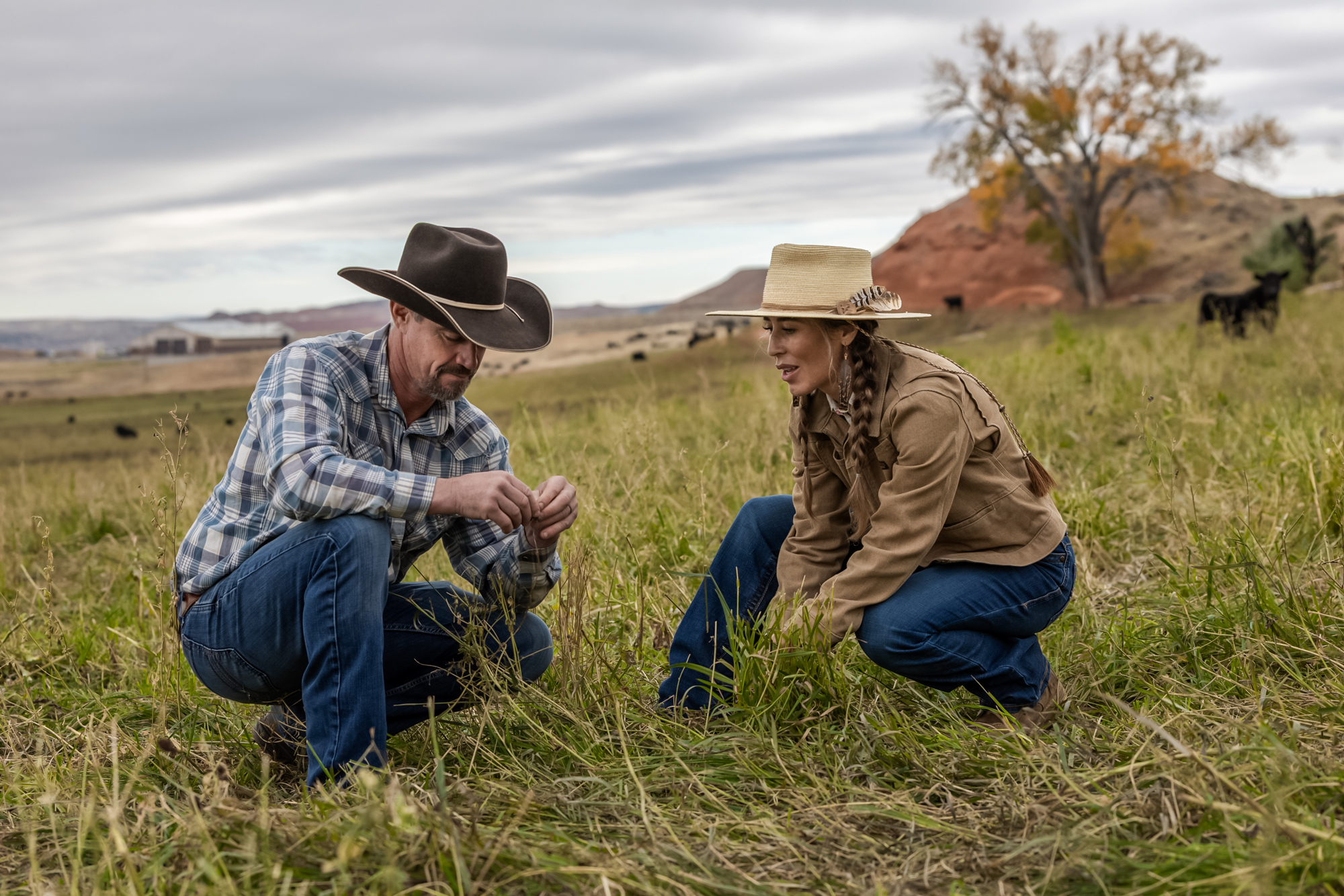 R.C. and Annia Carter on their cattle ranch near Ten Sleep, Wyo., on Oct. 9, 2025. The Carters founded a nonprofit that certifies regenerative ranching using third-party tests of soil organic matter, carbon-sequestration practices, vitamin and fatty-acid levels, and heavy metals and other contaminants. (Beige Luciano Adams / The Epoch Times)