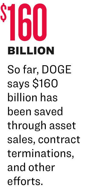 So far, DOGE reports that $160 billion has been saved through asset sales, contract terminations, and other efforts, so far well short of its bold $1 trillion first-year target.
