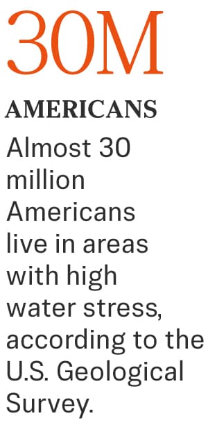 More U.S. cities have been facing water stress in recent years. Drought conditions affected more than a third of the nation last year, with almost 30 million Americans living in areas with high water stress, according to the U.S. Geological Survey.
