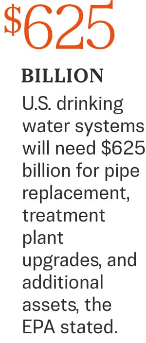 In October 2024, the EPA announced its final rule on replacing lead piping nationwide, with compliance required to begin that year. The ultimate goal was to replace all aging and leaking drinking water pipes nationwide within 10 years. The agency stated that the country’s drinking water systems would need $625 billion for pipe replacement, treatment plant upgrades, and additional assets.