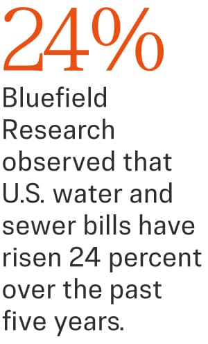 Bluefield Research observed in 2025 that U.S. water and sewer bills had risen 24 percent over the previous five years.