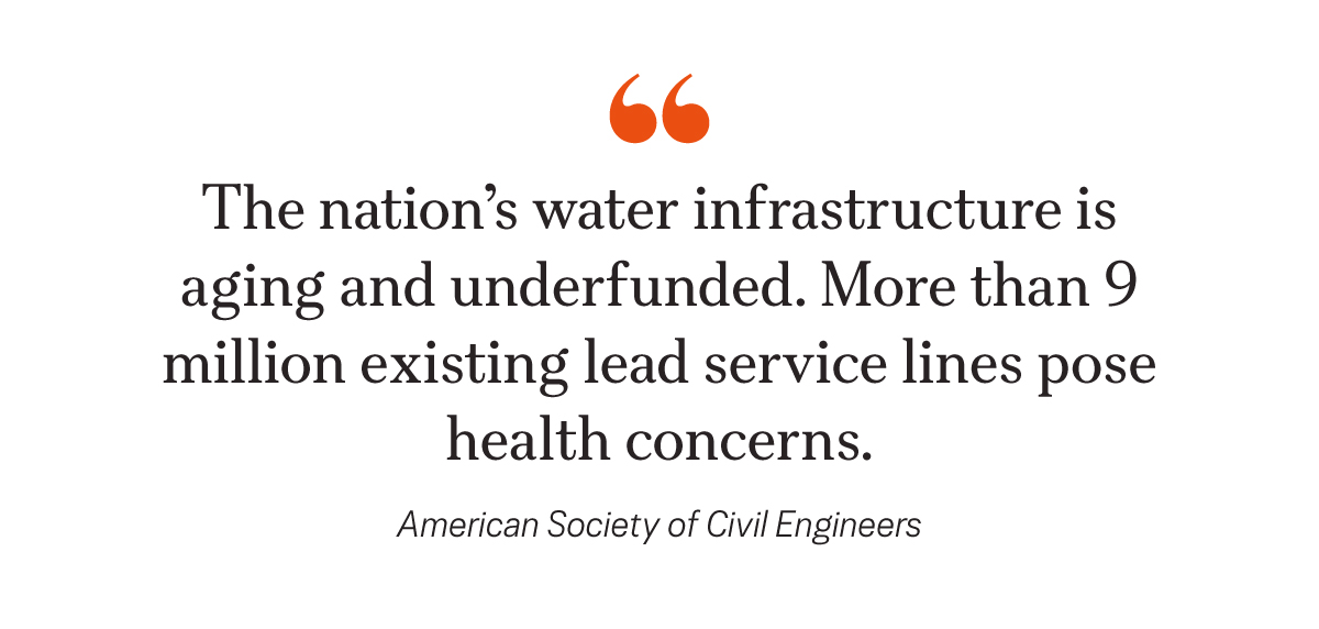 “The nation’s water infrastructure is aging and underfunded. More than 9 million existing lead service lines pose health concerns,” the engineers stated in the report.