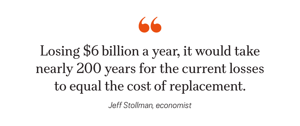 “Losing $6 billion a year, it would take nearly 200 years for the current losses to equal the cost of replacement.”