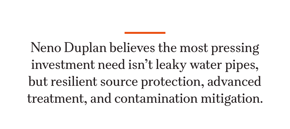 He believes the most pressing investment need isn’t leaky water pipes, but resilient source protection, advanced treatment, and contamination mitigation.