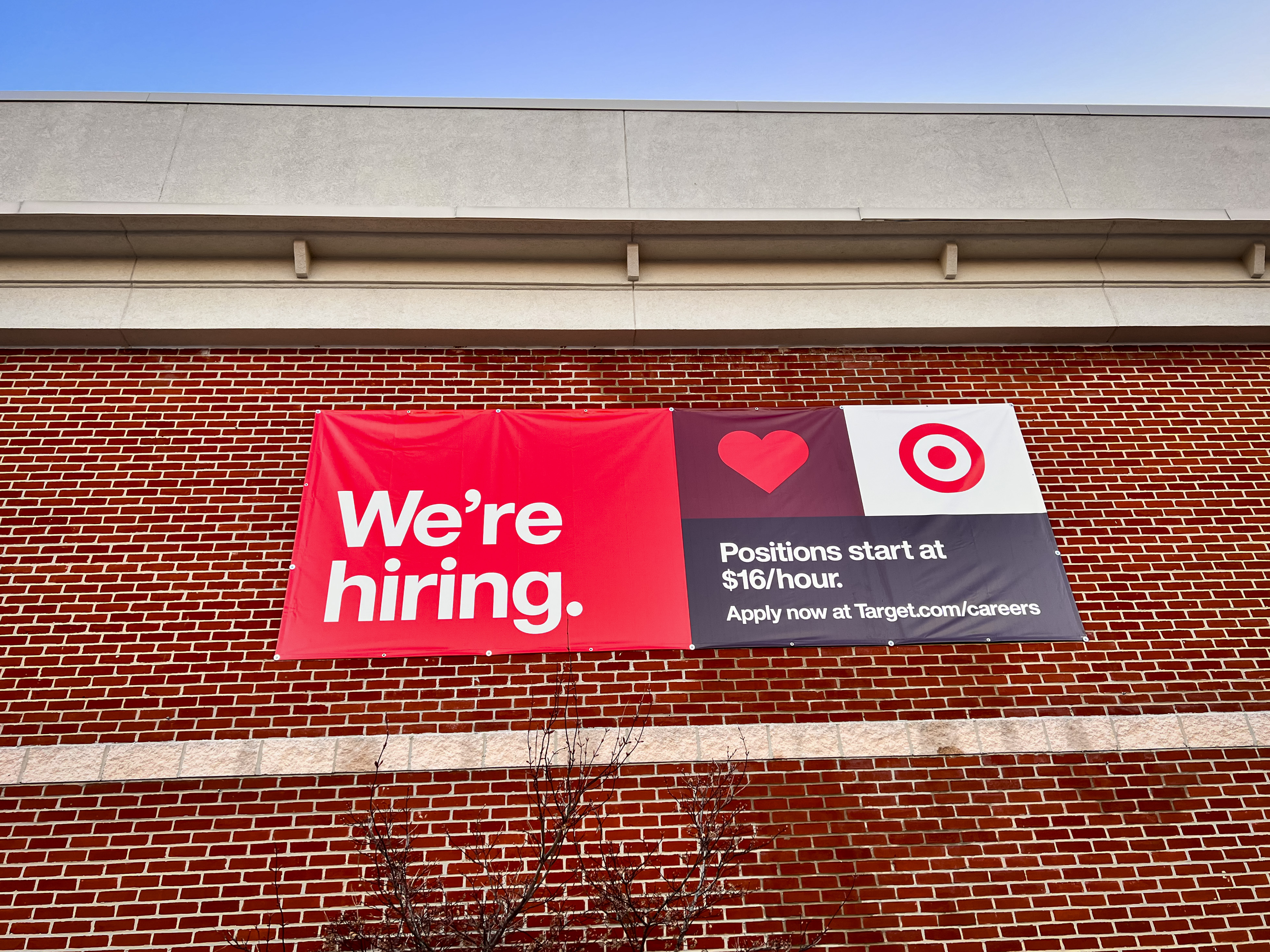 A hiring ad is displayed at a store in Columbia, Md., on Sept. 18, 2025. (Madalina Kilroy/The Epoch Times)