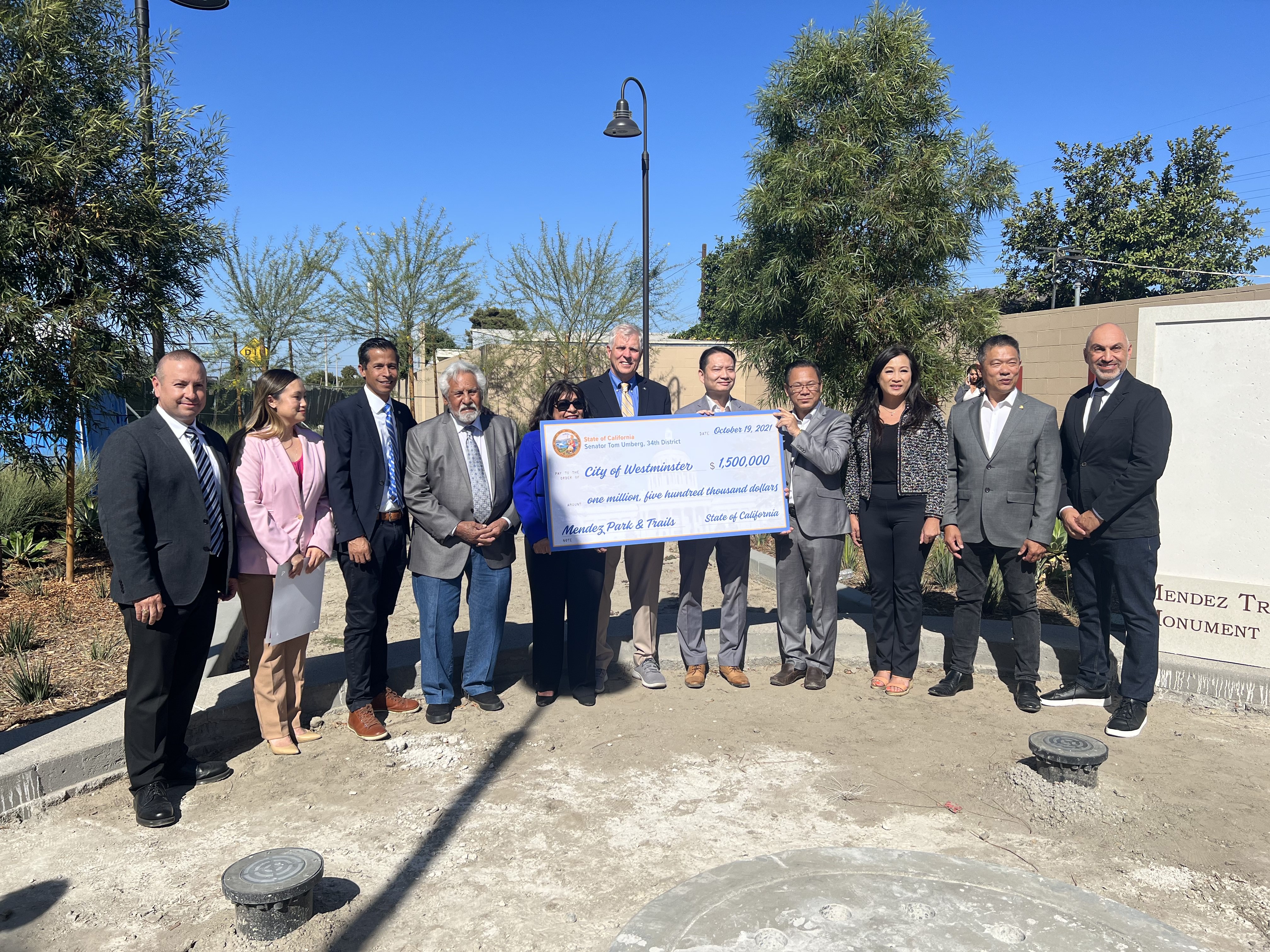 A $1.5 million check was given to the city of Westminster, California, on Oct. 19 by state Sen. Tom Umberg (D-Santa Ana) Oct. 19 that will allow for the completion of the Mendez Freedom Trail in honor of a 1940s civil rights case that desegregated California public schools.
